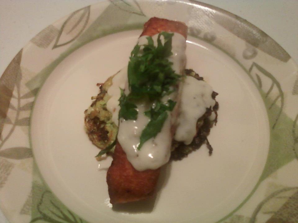 This is a healthy and super yummy dish for the New Year. Zucchini-cheese pancakes topped with Salmon and a white country sauce.
