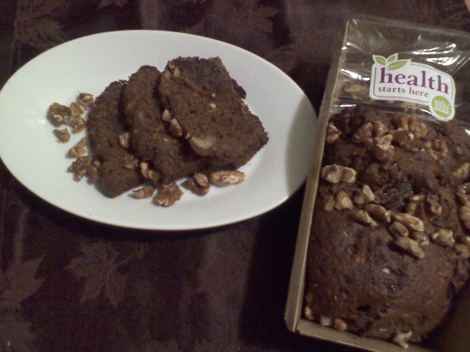 Health Starts Here Date & Walnut Pound cake from Whole Foods Market is made with sprouted grains, and sweetened with the sugars of the dates within. It is healthy and yummy at the same time. Great with a cup of coffee in the morning (with a glass of flax milk) or with a scoop of vanilla ice cream for dessert.