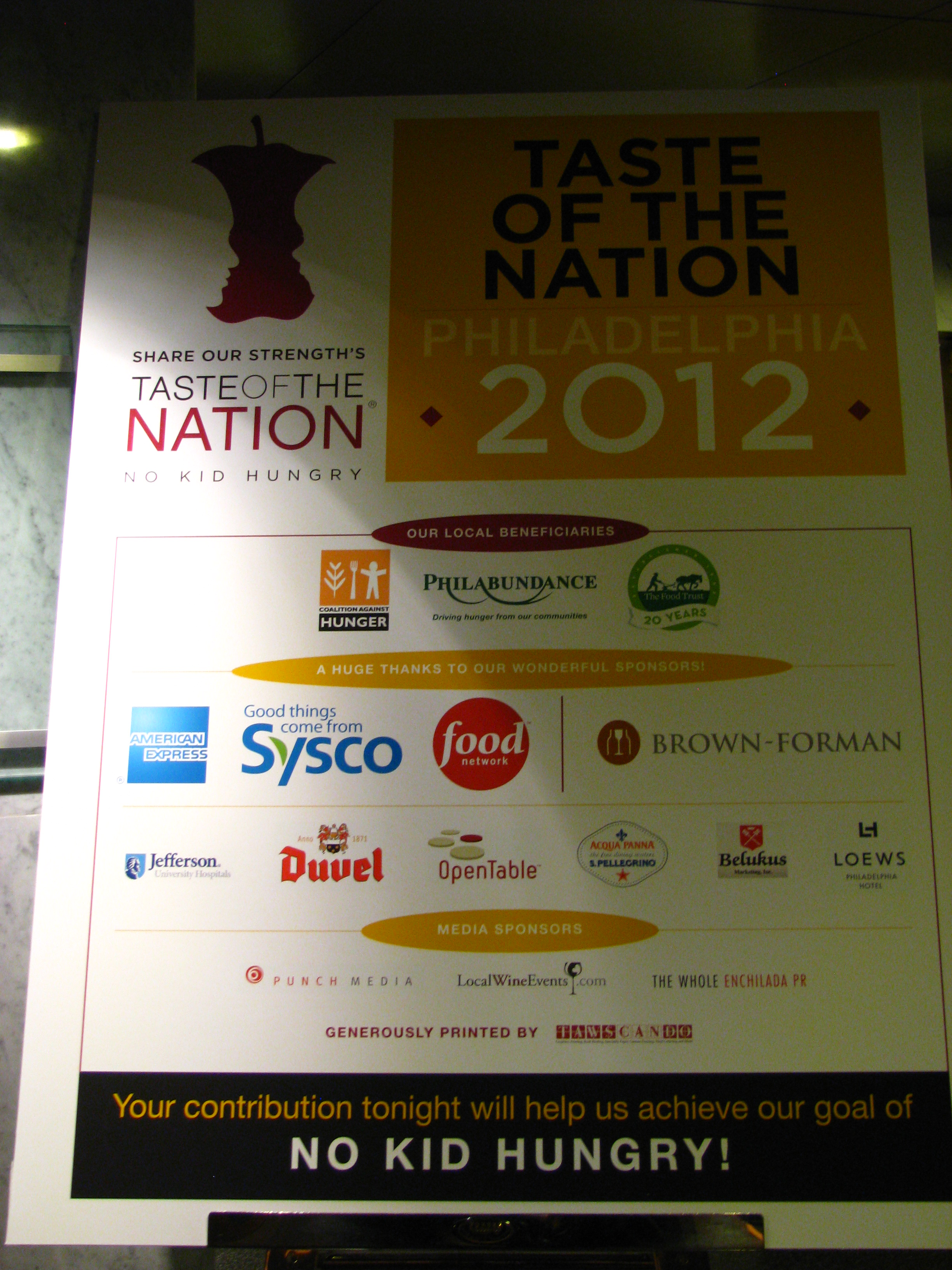 I was so honored to be invited as a VIP to this event and would like to share with you a little bit about it.  This is an amazing non-profit organization that comes together every year to support the No Kid Hungry benefit.  Taste of the nation comes together with some amazing chefs and culinary experts to raise money so that every child will not be hungry.  This year they raised $40,000.  Think of how many kids they have helped.  I got to meet some amazing people like Walter Staib and Top chef winner of season 7, Kevin Sbraga, who opened a restaurant here in Philadelphia called Sbraga.  There were well over 20 restaurants there to sample some of their amazing dishes.  There were also wines from Sonoma Cutrer, Specialty cocktails and premium beers provided by Belukus Marketing and Duvel.  These are just some of the great things that were at Taste of the Nation.  This is definitely a no miss event when it comes around.  So I hope some of you will come out next year.  If you would like to donate to this amazing cause please visit www.strength.org, I will also keep you posted on next year’s event.