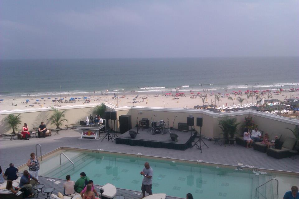 Where do I even start?  What an AMAZING event that I am truly honored to have been a part.  Ceasars Entertainment Proudly presented the 4th annual Food Network Food and Wine Festival in Atlantic City, NJ.  Thursday the 26th was the launch party for the Food and Wine Festival.  The event took place at the pool after dark at Harrah’s where Anne Burrell and Andrew Zimmeran kicked off the party.