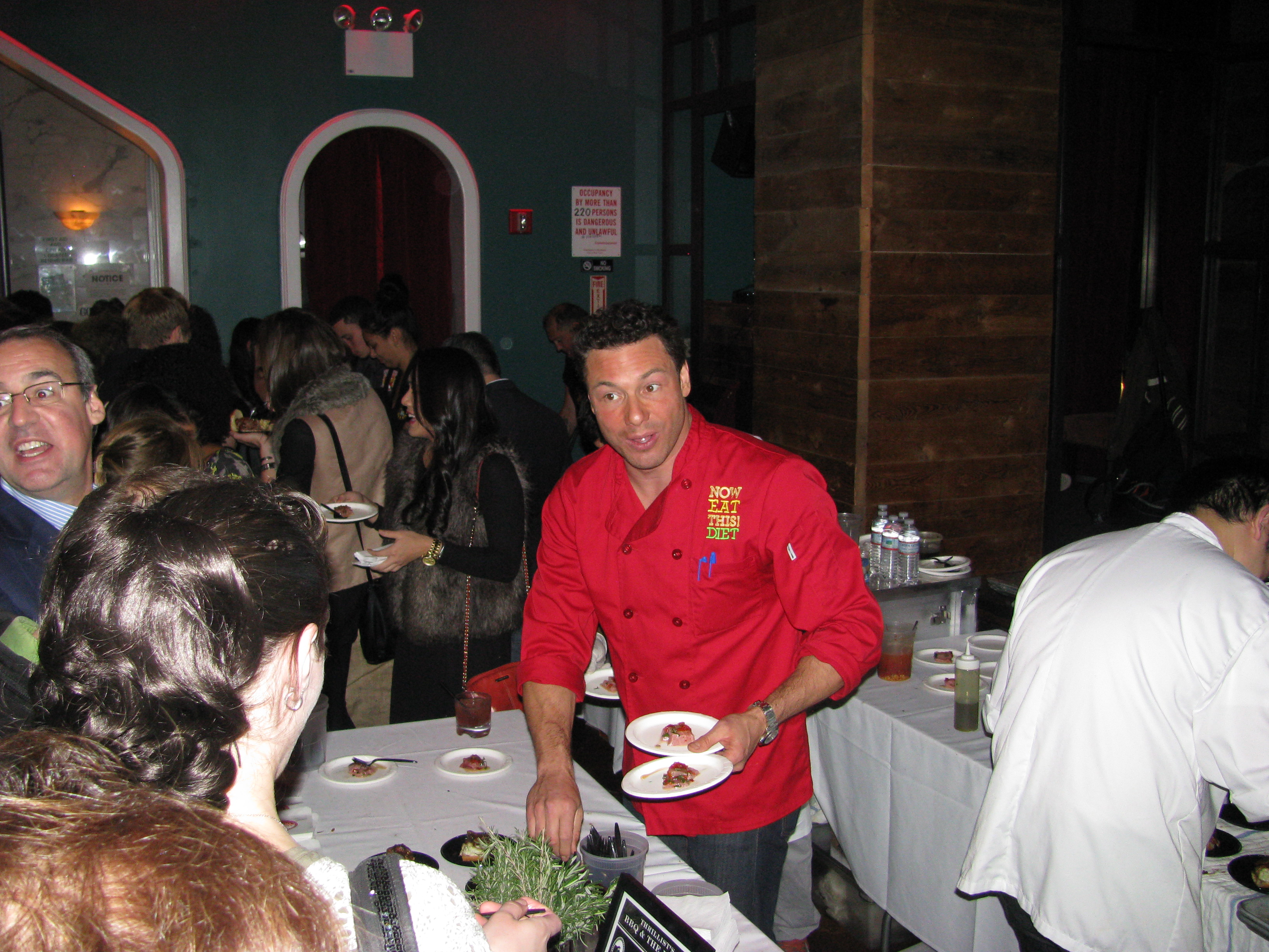As I moved on downstairs to the first floor.  I found Mr. Rocco.  What a sweetheart of a guy.  He was working on dishing out his food and taking pictures, talking to his fans and reporters.  His PR people were super friendly.  People just couldn’t get enough of him and his yummy food.  One of the dishes that he served was a Salmon with some spice sauce on top.   It was very refreshing and had a great bite.  The jazzy/blues music was all around, people were really enjoying themselves and it was all for a good cause.
