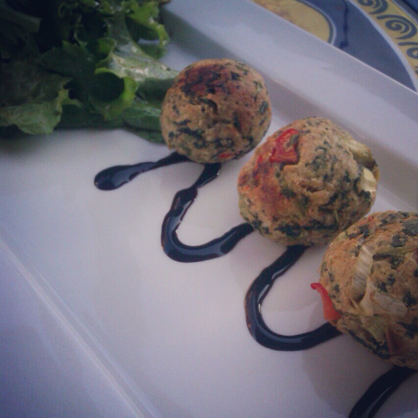 To all my veggie lovers I think you’re gonna love this one. These little Spinach and Red pepper balls are great. Enjoy them as an appetizer or if you would like in sauce and have yourself some veggie meatless balls. There’s so much flavor packed in a little roll. I didn’t fry these little guys either. I baked them which cuts back on the fat. I hope you enjoy them.
