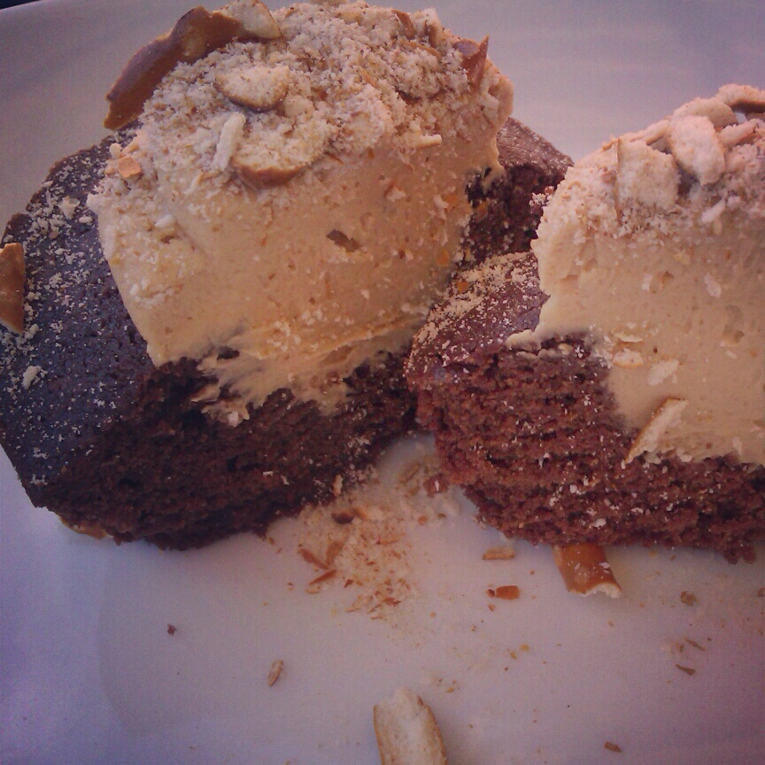While the brownies are cooling, prepare the topping. Beat the butter and peanut butter with a mixer at medium speed until blended. Reduce the speed to low and gradually beat in the powdered sugar. Increase the speed to high and beat for 3 minutes, until smooth and fluffy.