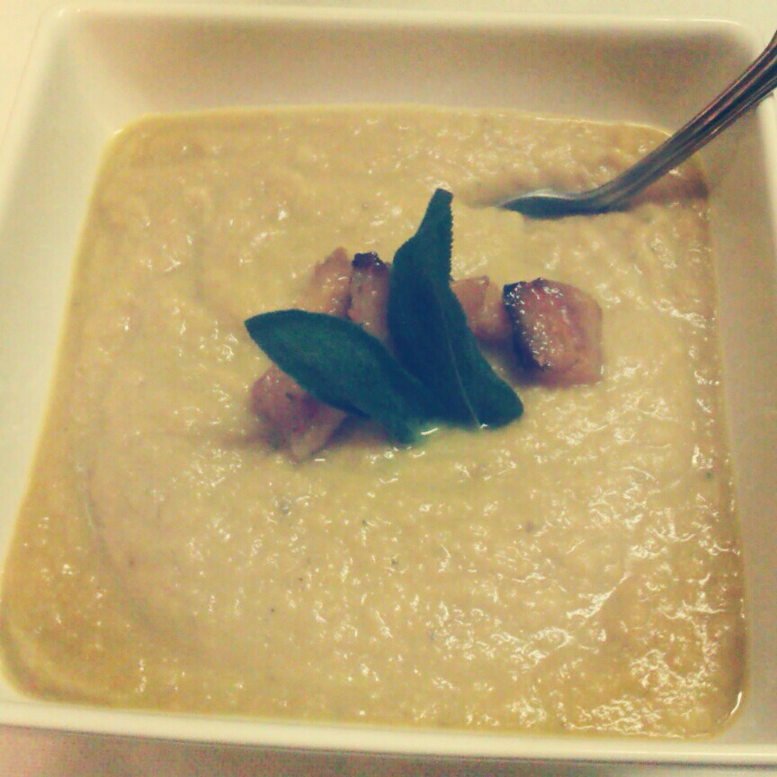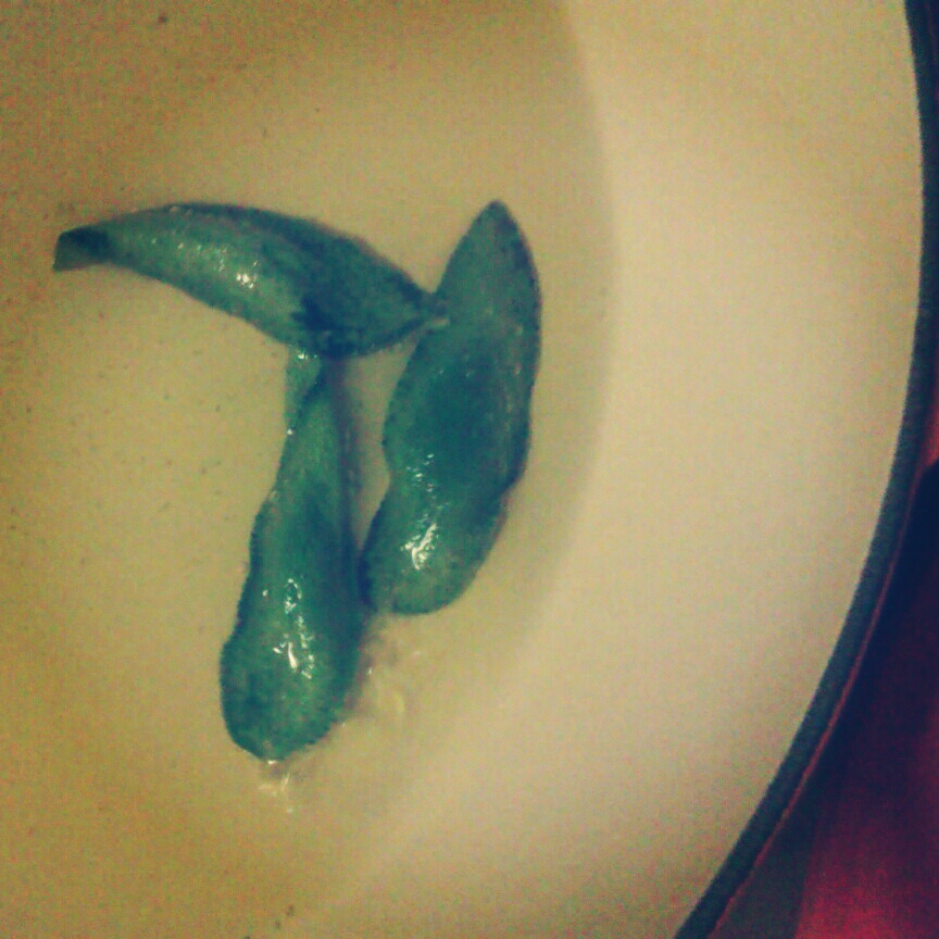 This time of year is great to invent some delicious soups.  Today in Philadelphia it was slightly chilly, and that just sets my mood for some homemade soup.  I remember growing up and having my dad make the best soups, full of veggies and heart healthy goodness.  When I went to the supermarket, I picked up some different veggies and hoped that the combo would work.  For a garnish i decided on frying up some sage (no you don’t bread it or anything, you just want it crispy).  Here is the recipe.  I hope you enjoy.