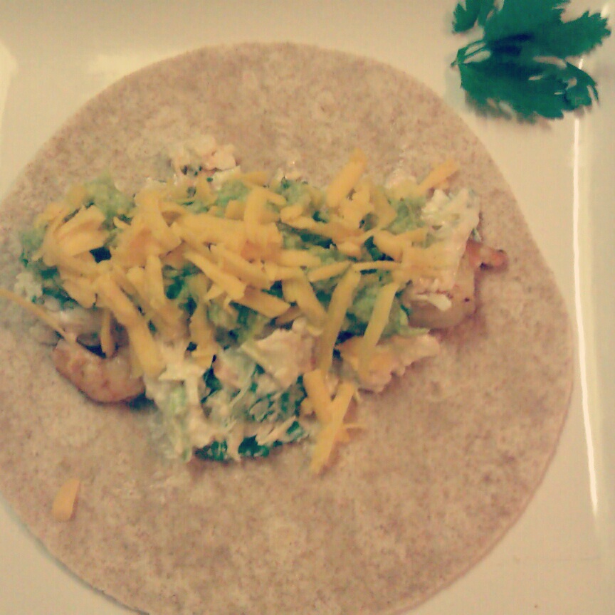 After everything is set and done all you have to do is place everything in a Whole Wheat Tortilla (or regular). In this picture I actually had the taco with some mexican shredded cheddar (for all the cheese lovers). Enjoy!