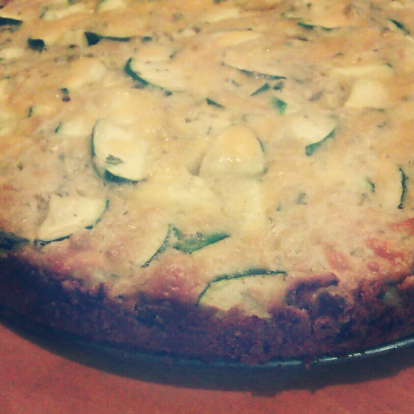 Preheat oven to 350F. Place everything in a big bowl and mix. Place into 9″ inch baking pie dish and bake for about 35 minutes. You want a nice golden crust on top.