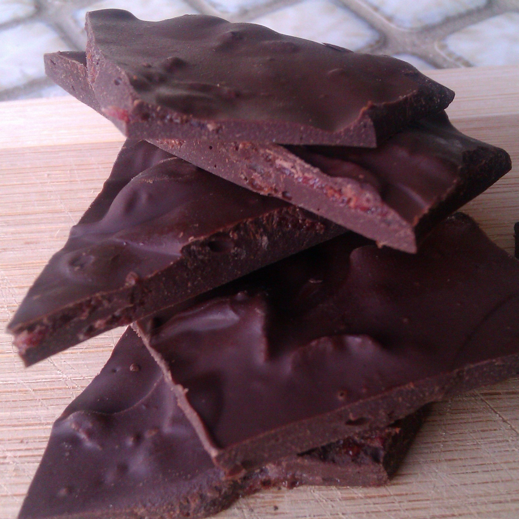 Pour the Chocolate mix on a piece of parchment paper and smooth out until you have a nice think layer (or you can make as thick as you would want) Let sit in the refrigerator for about 1/2 hour or place in the freezer for 15 minutes.