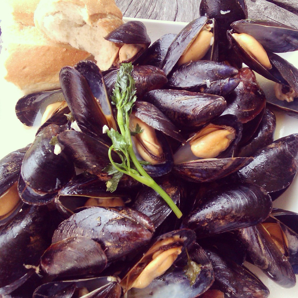 We have just gotten to Maine where mussels are fresh out of the water. One of my absolute favorite dinners is mussels with a salad and thick slices of crusty bread for dipping.