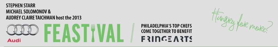 The 2013 Audi FEASTIVAL, presented by Philadelphia Magazine/Foobooz, PECO and the Delaware River Waterfront Corporation, will once again be co-hosted by three culinary luminaries: Stephen Starr, Michael Solomonov and Audrey Claire Taichman. Event co-chairs are Denise Di Simone of PNC Bank; Real Estate Attorney, Tony Forte, of Saul Ewing LLP, and Jesse & Beka Rendell. Crystal and Truffle level sponsors include: Amstel, Arway Linen & Uniform Rental Service, Expert Events LLC, Franklin Square Capital Partners, Fury Design, Hersha Hospitality and The Rittenhouse and Susquehanna Bank. Industry partners include: Mediacopy, Siembra Azul Tequila, Southern Wine & Spirits, Verterra, Vintage Imports and the Wine Merchant.