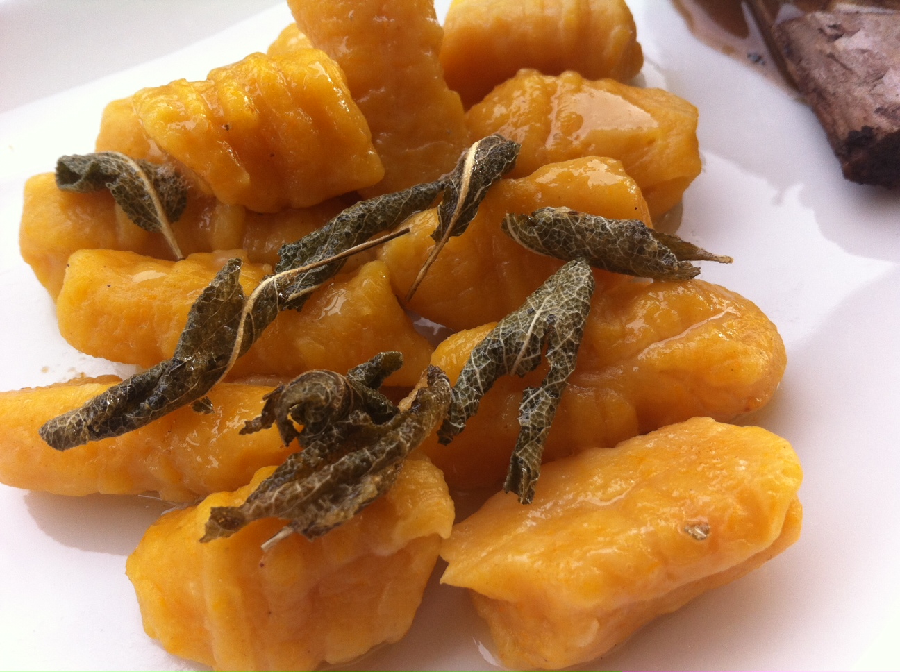 I grew up in a household where everything was pretty much made from scratch. My father was a professional baker; so I learned so much from him.  My grandmother was another one who taught me a couple of things in the kitchen.  One of the things I will never forget is how to make homemade bread or pasta.  I remember when I was about 5 years old, she taught me how to make gnocchi.  It was so much fun.  I wanted to make a homemade gnocchi with butternut squash (instead of traditional potatoes). The dough to gnocchi is super fluffy, like clouds. This is a perfect 1st course starter. I also made a butter and sage sauce to toss the gnocchi. This goes great with my red wine short ribs I’ve also posted on this site. I hope you enjoy!