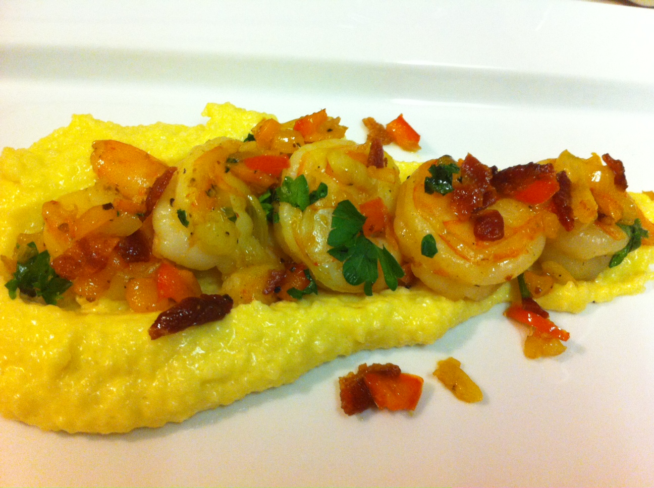Happy Holidays!!! I hope you are all having a great holiday season with family and friends. I wanted to share with you a couple of dishes I prepared on Christmas eve. Last year in our house we started to make the 7 fishes. Since my husband and I come from Italian descents, we wanted to keep this in our family to share with our kids. Well this year I wanted to step it up. In the next couple of posts I will share some of the dishes that I prepared. I am going to start out with Shrimp and Grits. I love some creamy, cheesy grits. I think they can be prepared with pretty much anything. The shrimp with some sweet peppers and shallots went along great with the grits. Then I topped it off with some crispy bacon. This is a pretty easy dish to prepare at your next gathering or for a weeknight meal.