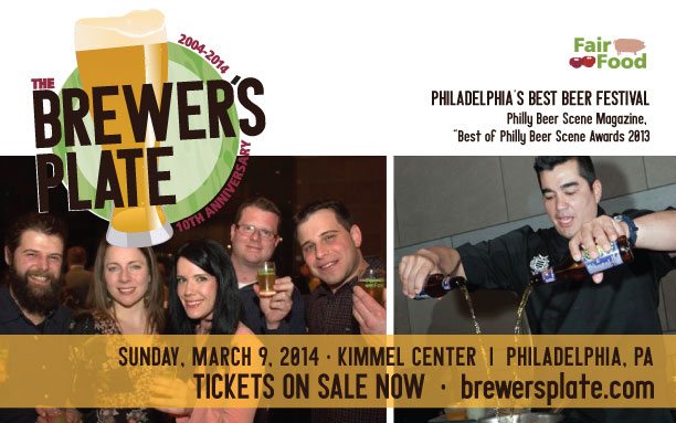 The Brewer’s Plate is back an event not to miss. Philadelphia’s premier local beer and food pairing festival is back for another year with a new venue and a (mash) ton of surprises in store. Fair Food is proud to announce details for The Brewer’s Plate 10th Anniversary Celebration at the Kimmel Center for the Performing Arts on Sunday, March 9th, 2014.