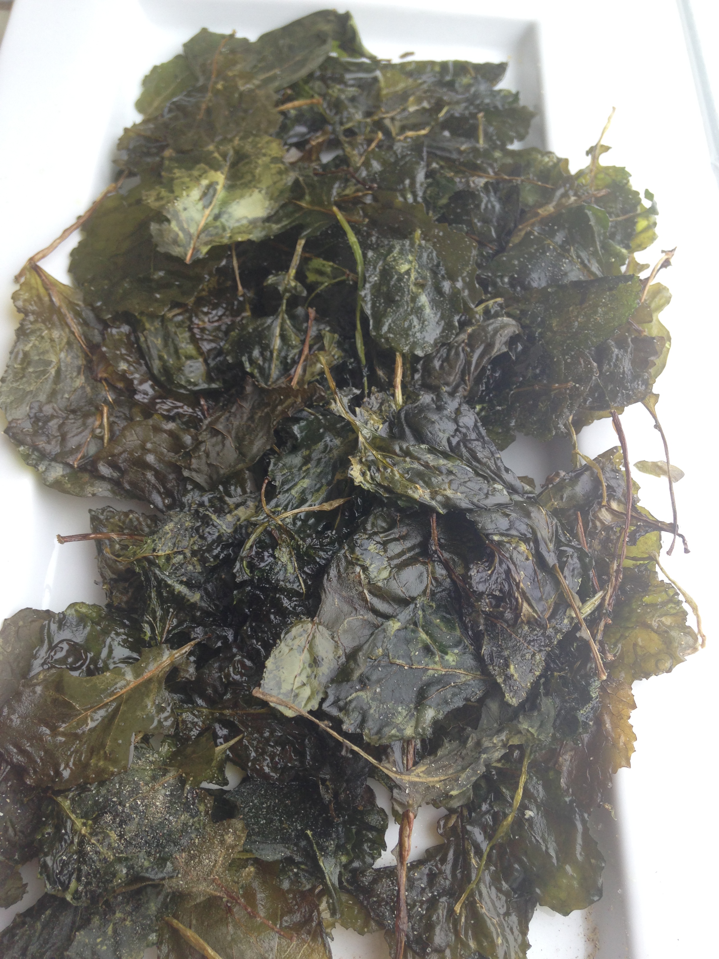Kale chips are addicting! I like to add a bit of chili powder and/or paprika for a bit of kick. Just seeded kale in my greenhouse raised bed, can’t wait for homegrown chips!