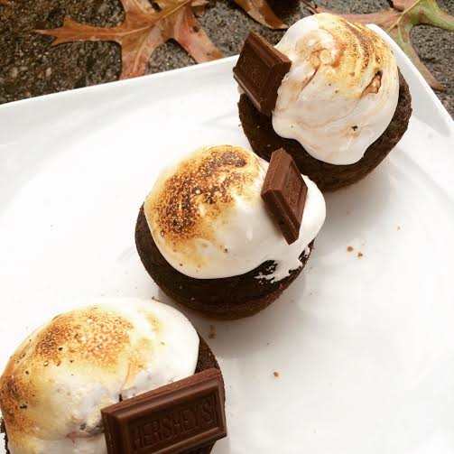 Next using my oxo cupcake Icing knife I spread the fluff on top. Using my little torch gun I roasted the marshmallow fluff until golden brown. Topped with a Hershey’s piece of chocolate. Enjoy!