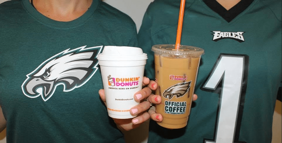 Beginning Sept. 10 as the Eagles take on the Redskins, DD Perks members can score a $1 medium Hot or Iced Coffee on all Eagles game days when they pay with a DD Perks enrolled Dunkin’ Donuts card. Additionally, with the “Cheers, Eagles Won!” promotion, DD Perks members can score a $1 medium Hot or Iced Coffee the day following an Eagles regular season win when they pay with a DD Perks enrolled Dunkin’ Donuts card. The offers are valid at participating Dunkin’ Donuts restaurants in the greater Philadelphia region throughout the 2017-18 regular season. Fans can become DD Perks members by enrolling at DDPerks.com or through the Dunkin’ Mobile App®.