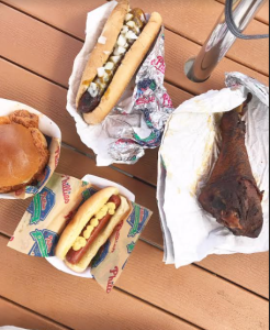 Then we were off to grab some food and drink. When we arrived at the new “Boardwalk Eats” area, we were surprised that there were so many more options than just hotdogs, peanuts, and cracker jacks. Now wait. I know you’re probably thinking that those are crucial baseball necessities during a game, but why not have more options? There were large smoked turkey legs, brisket tacos, vegan and regular cheesesteaks, edible cookie dough, pulled pork sandwiches and more. The foodie in me was having a hard time deciding, but ultimately I went with “the big dog”, which was a kielbasa sandwich.