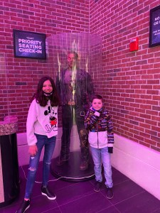The last time my husband and I visited Disney Springs was about 15 years ago on our honeymoon. We never forgot our dinner at Planet Hollywood. So during our visit back this time we had the opportunity to go and have dinner at Planet Hollywood with our kids. They made a couple of changes to the floor to create more room for the booths. They still kept those awesome movie props that we all love to walk around and see too. We had one of the best seats in the house.
